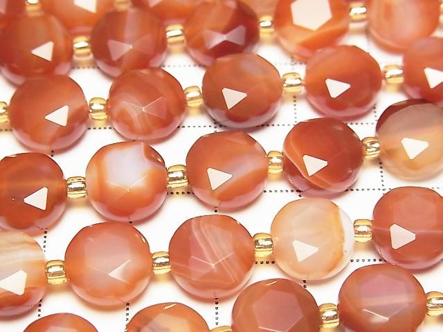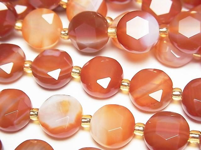 [Video] High Quality! Carnelian, Sardonyx Hexagram Faceted Coin 10x10x5.5mm half or 1strand beads (aprx.15inch/36cm)