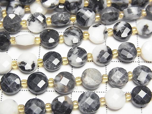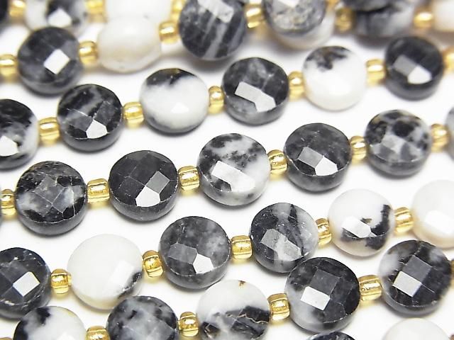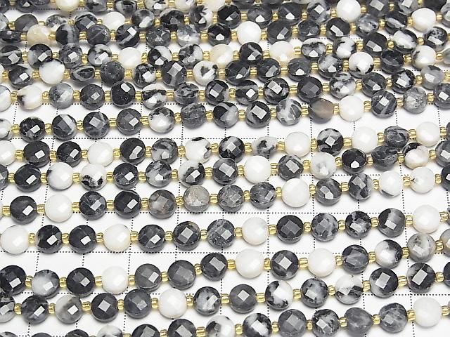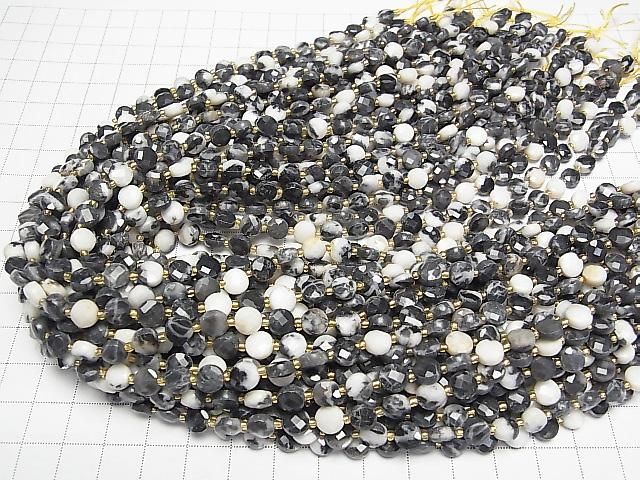 [Video] High Quality! Zebra Jasper Faceted Coin 6x6x4mm 1strand beads (approx. 15 inches/37 cm)