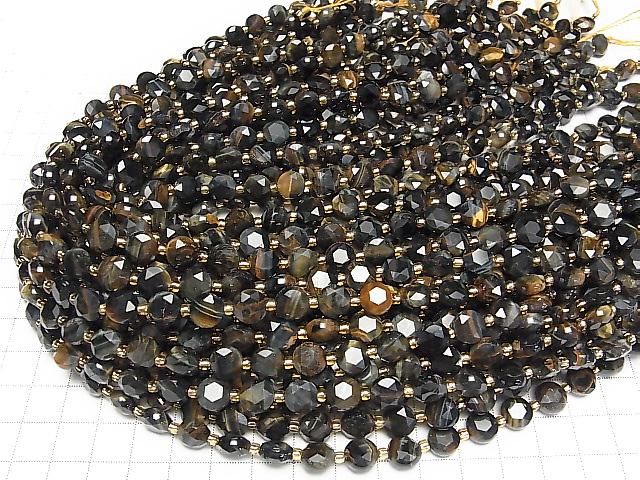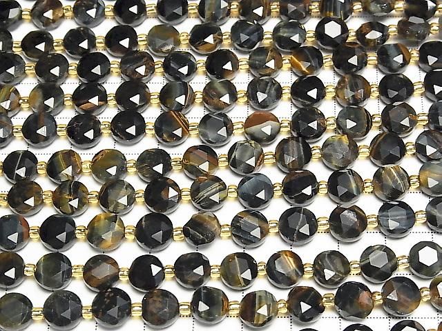 [Video] High Quality! Mixed Tiger's Eye AA++ Hexagram Faceted Coin 8x8x5mm 1strand beads (approx. 15 inches/36 cm)
