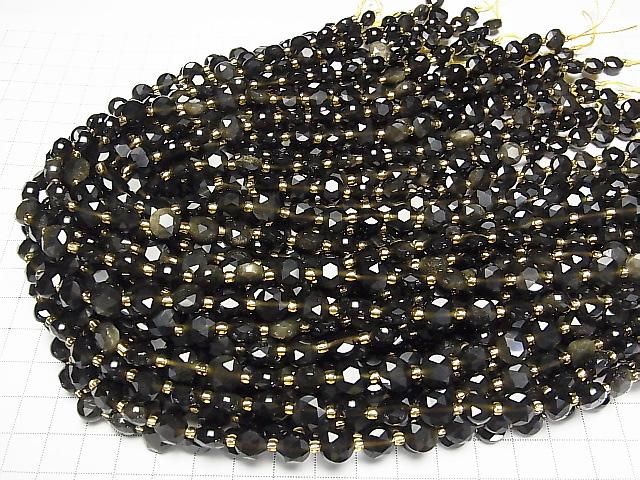 [Video] High Quality! Golden Obsidian AAA- Hexagram Faceted Coin 8x8x5mm 1strand beads (approx. 15 inches/37 cm)