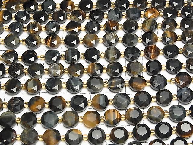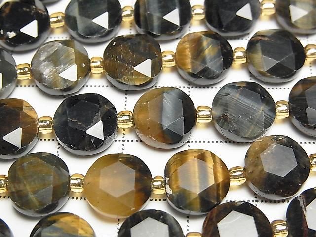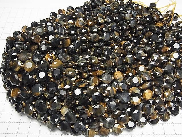 [Video] High Quality! Mixed Tiger's Eye AA++ Hexagram Faceted Coin 10x10x5mm Half or 1strand beads (approx. 15 inches/36 cm)