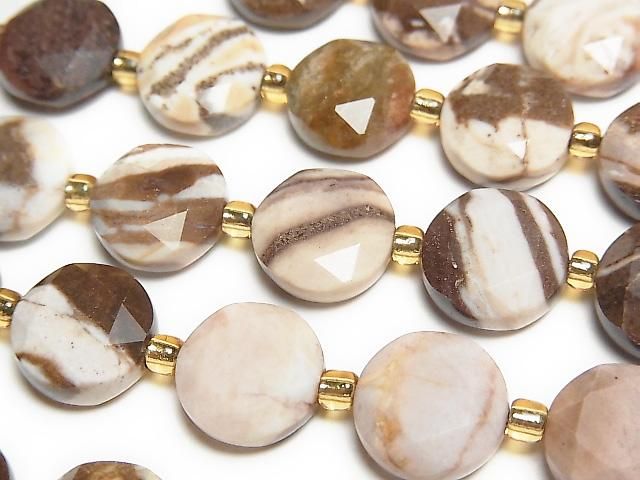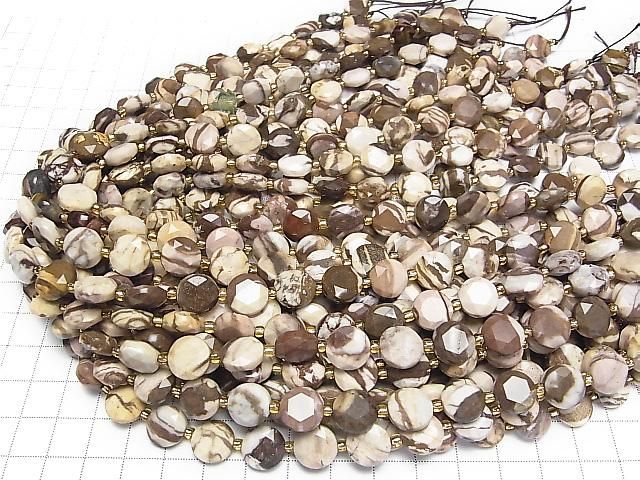 [Video] High Quality! Cappuccino Jasper Hexagram Faceted Coin 10x10x5mm Half or 1strand beads (approx. 15 inches/36 cm)