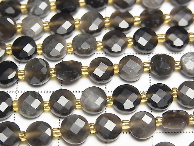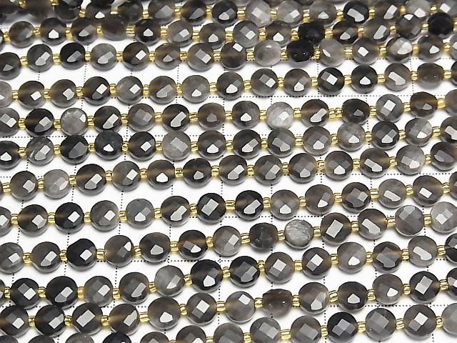 [Video] High Quality! Silver Obsidian AAA- Faceted Coin 6x6x4mm Half or 1strand beads (approx. 15 inches/37 cm)