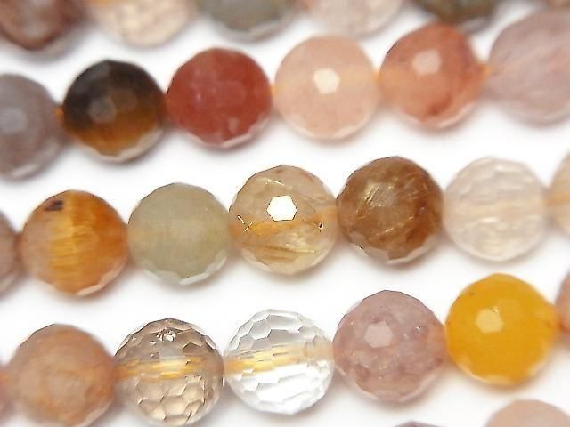 [Video] High Quality! Multicolor Rutilated Quartz AA+ 128 Faceted Round 8mm Half or 1strand beads (approx. 15 inches/36 cm)