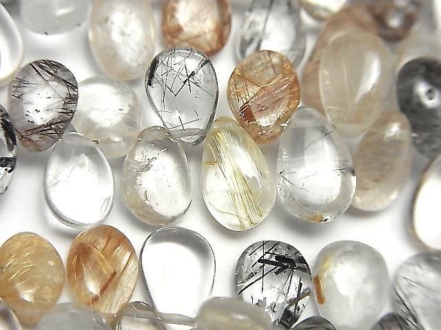 [Video] High Quality Rutilated Quartz x Tourmaline Quartz AA++ Pear Shape (Smooth) 1strand beads (approx. 7 inches/18 cm)