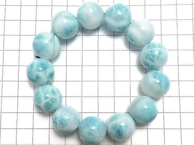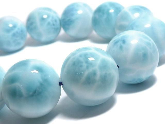 [Video][One of a kind] Larimar Pectolite AAA Round 17mm Bracelet NO.502