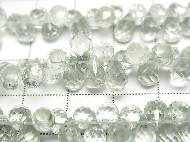 [Video] High Quality Green Amethyst AAA- Drop Faceted Briolette 1strand beads (approx. 7 inches/17 cm)
