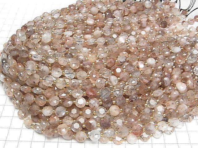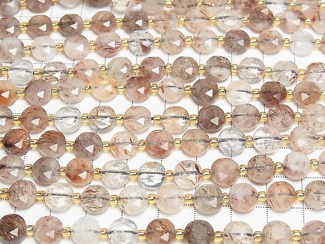 [Video] High Quality! Mica in Quartz AA+ Hexagram Faceted Coin 8.5x8.5x5mm Half or 1strand beads (approx. 15 inches/36 cm)