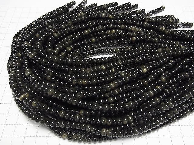 [Video] Golden Obsidian AAA- Rondelle 6x6x4mm 1strand beads (approx. 15 inches/36 cm)