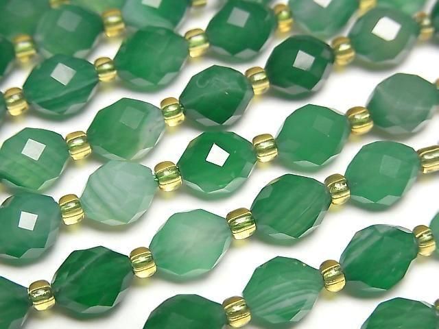 [Video] High Quality! Green Striped Agate Faceted Rice Beads 8x6x6mm 1strand (approx. 14 inches/35 cm)