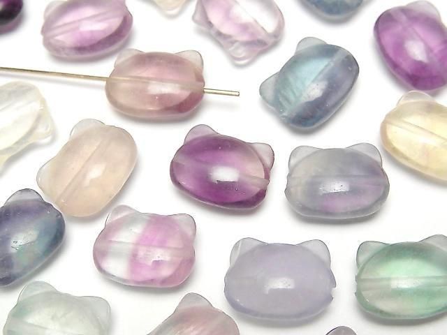 [Video] Multicolor Fluorite AAA- Cat Motif 10x13mm [Drilled Hole (Side Hole)] 5pcs