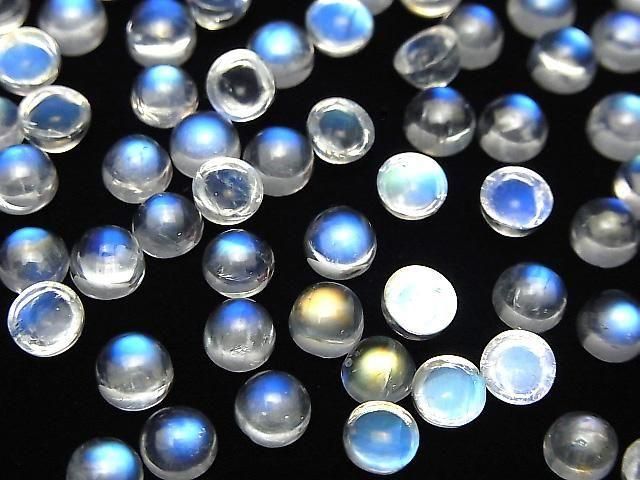 [Video] High Quality Rainbow Moonstone AAA++ Round Cabochon 5x5mm 2pcs