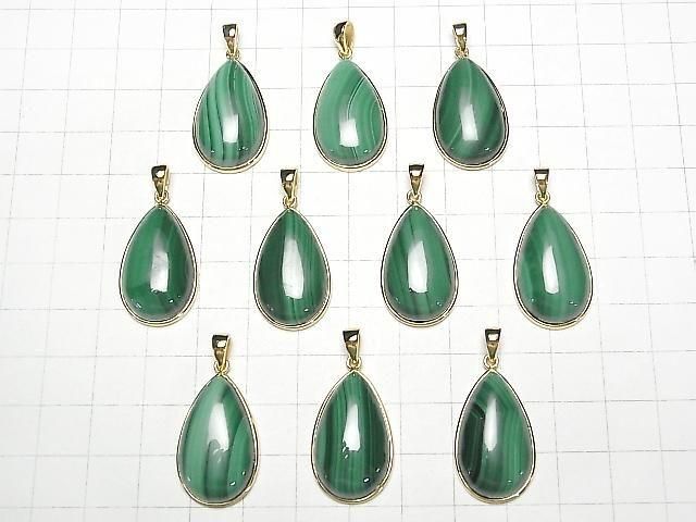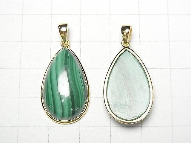[Video] Malachite AAA Pear Shape Pendant 25x16mm 18KGP 1pc