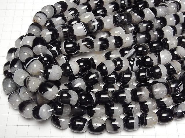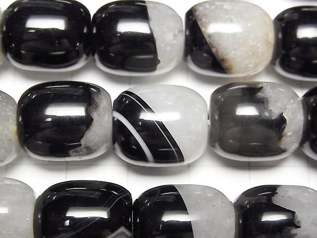 [Video] Black Agate x Quartz Tube 15.5x13.5x13.5mm half or 1strand beads (approx. 15 inches/36 cm)
