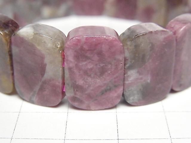 [Video] Deep Pink Tourmaline Silica A++ 2 Hole Rectangle 16x11x5mm 1strand (Bangle Bracelet)