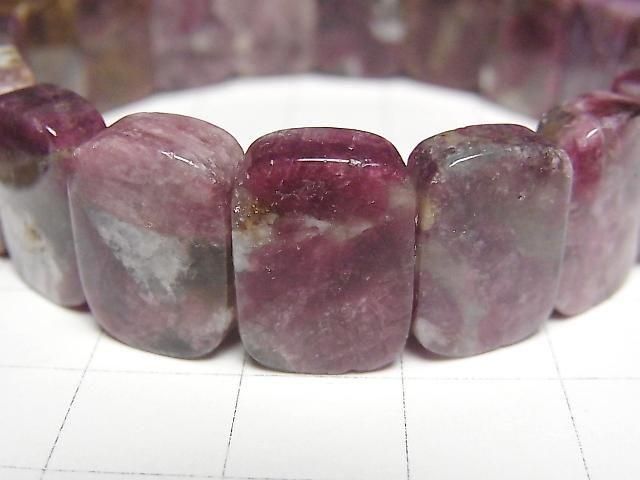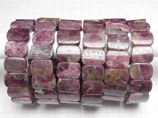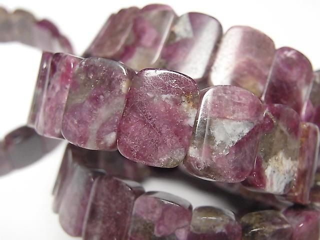 [Video] Deep Pink Tourmaline Silica A++ 2 Hole Rectangle 15x11x4mm 1strand (Bangle Bracelet)