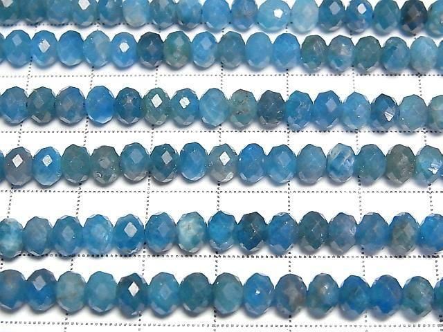 [Video] High Quality! Blue Apatite AA++ Faceted Button Rondelle 6x6x4mm 1strand beads (approx. 15 inches/37 cm)