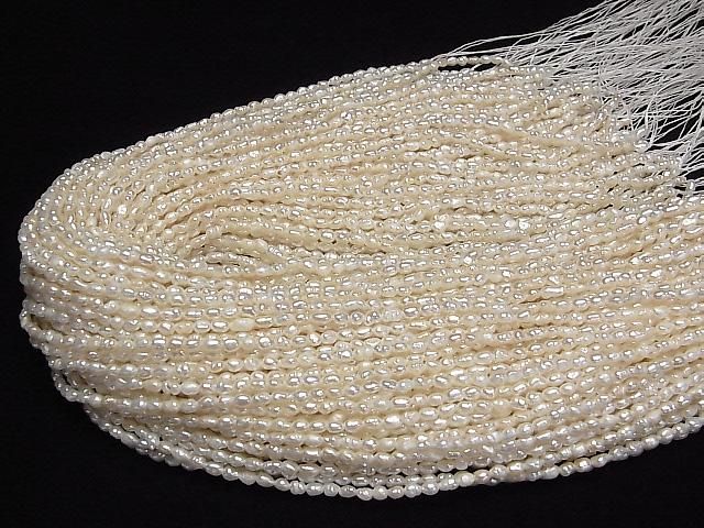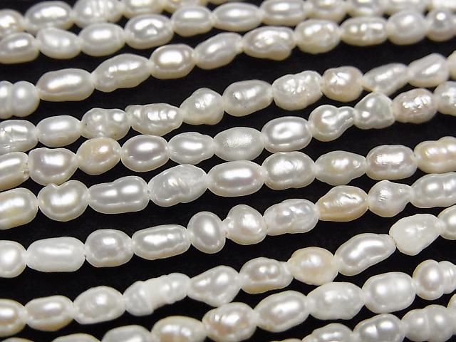 [Video] Fresh Water Pearl AA Rice-Baroque 4x3x3mm White 1strand beads (approx. 14 inches/34 cm)