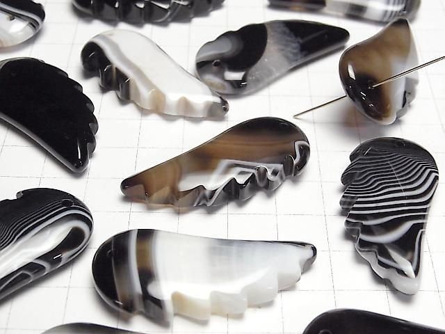 [Video] Black Stripe Agate Angel Wing 44x20mm 2pcs