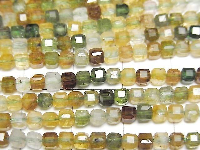 [Video] High Quality! Brown-Green Tourmaline AA+ Cube Shape 3x3x3mm 1strand beads (approx. 15 inches/37 cm)