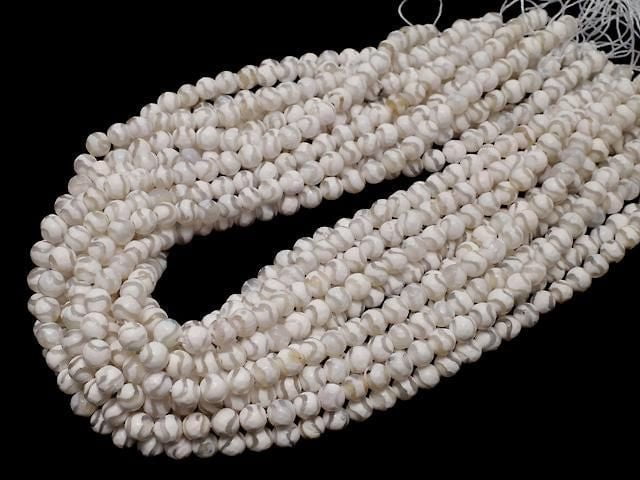 [Video] S-Shaped Line Carved White Agate Faceted Round 6mm 1strand beads (approx. 14 inches/34 cm)