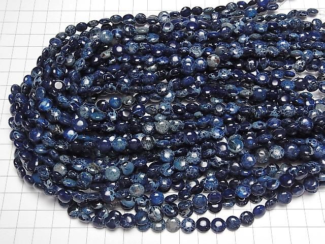 [Video] Navy Kaolinite Coin 8x8mm 1strand beads (approx. 15 inches/38 cm)