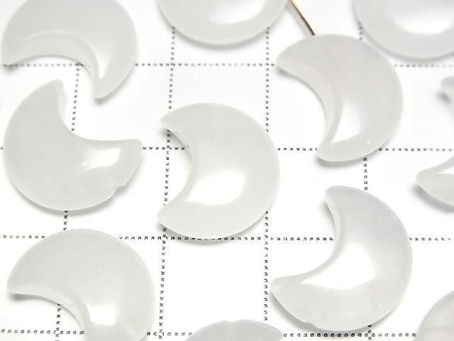 [Video] White Jade Moon Motif 15x12mm [Half Drilled Hole] 4pcs