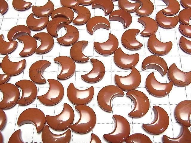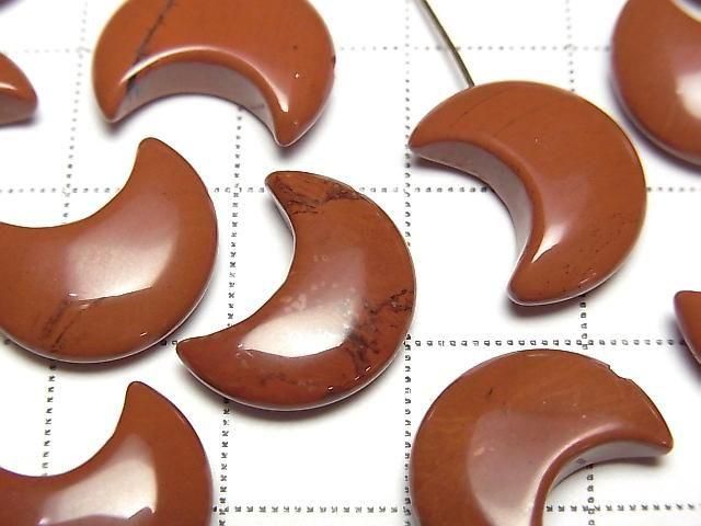 [Video] Red Jasper Moon Motif 15x12mm [Half Drilled Hole] 4pcs