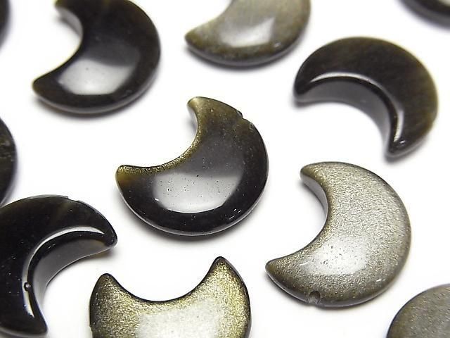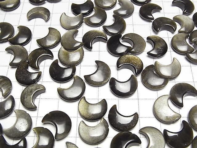 [Video] Golden Obsidian Moon Motif 15x12mm [Half Drilled Hole] 4pcs
