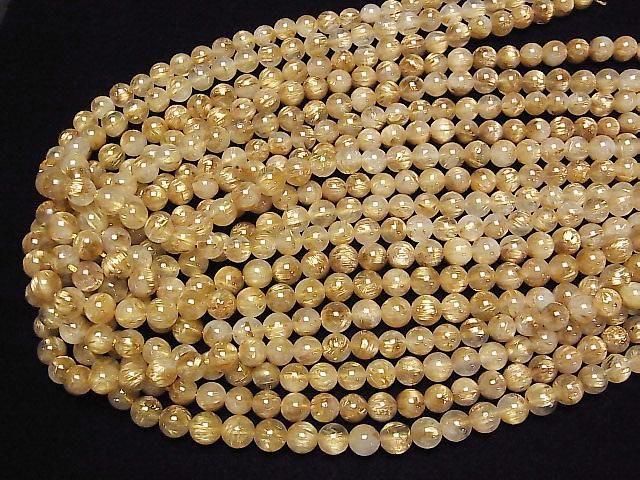 [Video] Golden Rutilated Quartz AA++ Round 7mm half or 1strand beads (aprx.15inch/38cm)