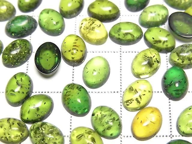 [Video] Cracked Green Amber Oval Cabochon 8x6mm 5pcs