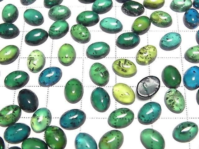[Video] Blue-green Amber Oval Cabochon 8x6mm 5pcs