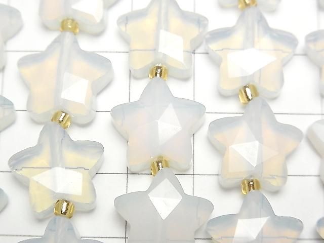 [Video] Synthetic Opal Faceted Star 14x14mm White Half or 1strand beads (aprx. 15 inches/36 cm)