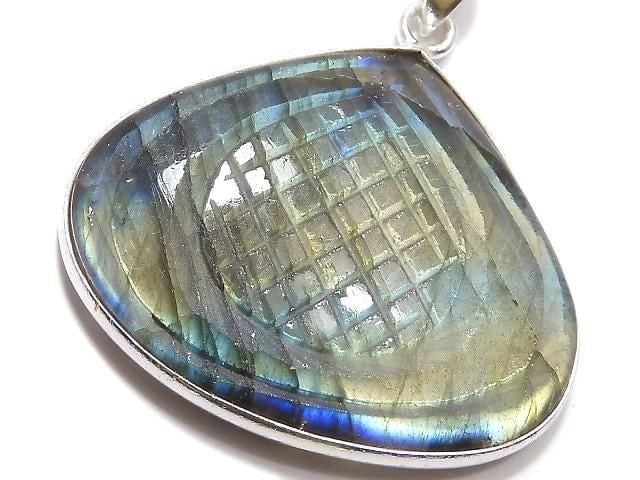 [Video][One of a kind] Rainbow Labradorite AAA- Carved Pendant Silver925 NO.44