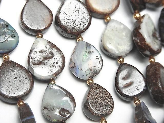 [Video] Boulder Opal Vertical Hole Pear Shape 1strand beads (15 pcs)