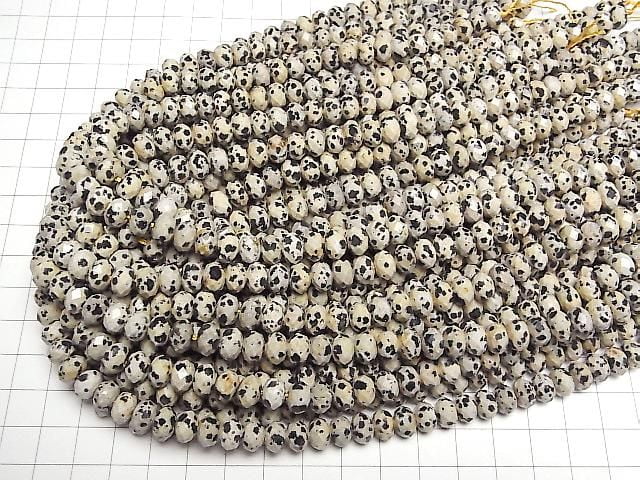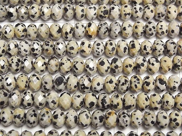[Video] High Quality! Dalmatian Jasper Faceted Button Rondelle 8x8x5mm 1strand beads (approx. 15 inches/37 cm)