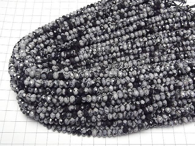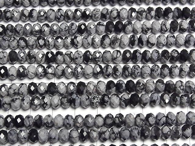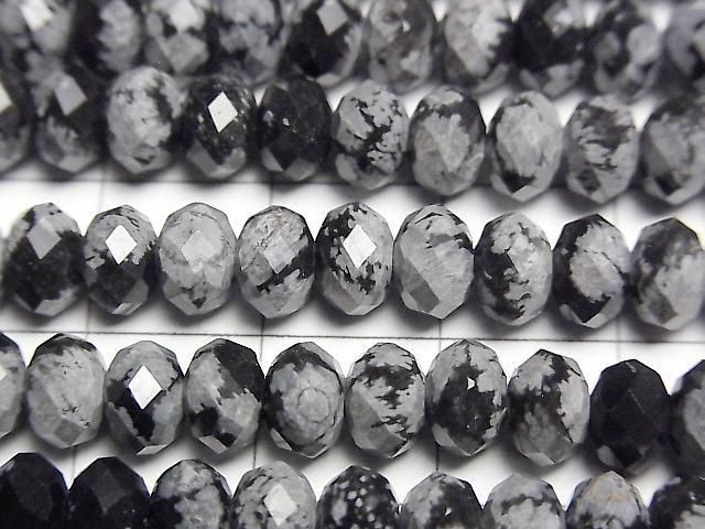 [Video] High Quality! Snowflake Obsidian Faceted Button Rondelle 6x6x4mm 1strand beads (approx. 15 inches/37 cm)