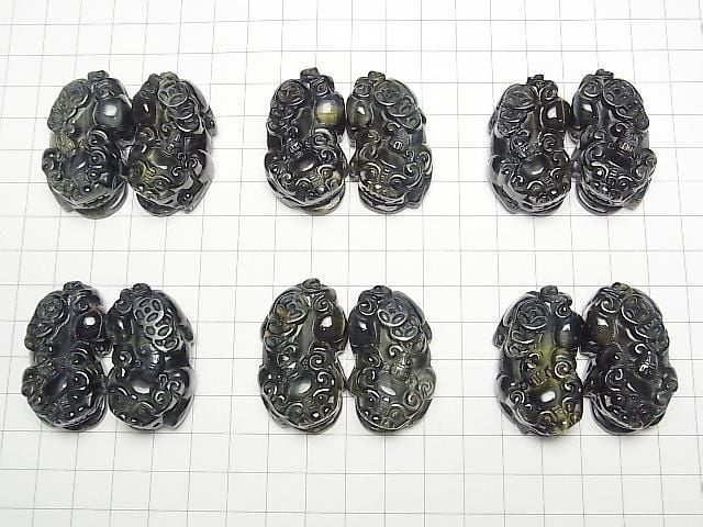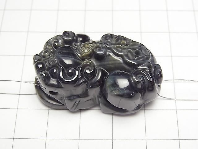 [Video] Natural Color Blue Tiger's Eye AA++ Pixiu Carving 38x22mm 1 Pair