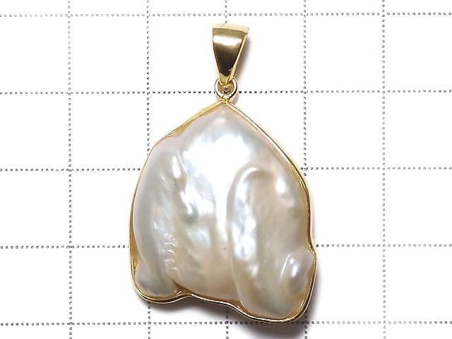 [Video][One of a kind] Fresh Water Pearl Keshi Pearl Pendant 18KGP NO.15