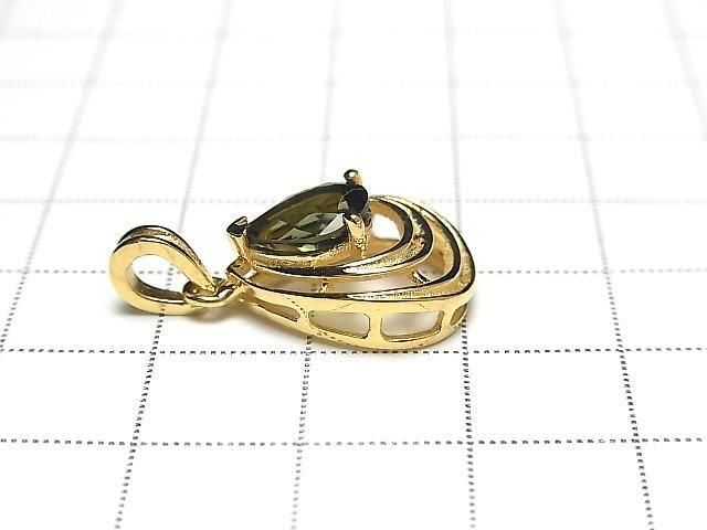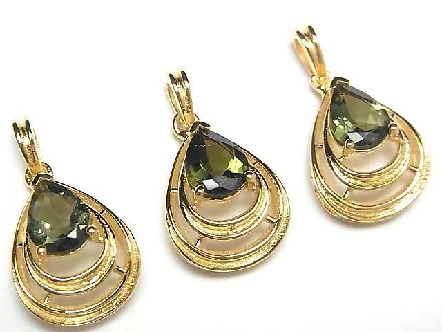 [Video] High Quality Moldavite AAA Pear shape Faceted 9x7mm Pendant 18KGP 1pc