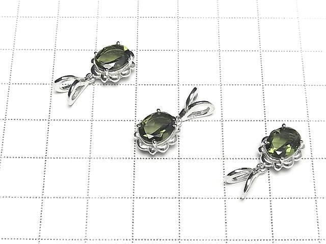 [Video] High Quality Moldavite AAA Oval Faceted 9x7mm Pendant Silver925 1pc