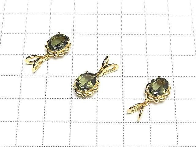 [Video] High Quality Moldavite AAA Oval Faceted 9x7mm Pendant 18KGP 1pc