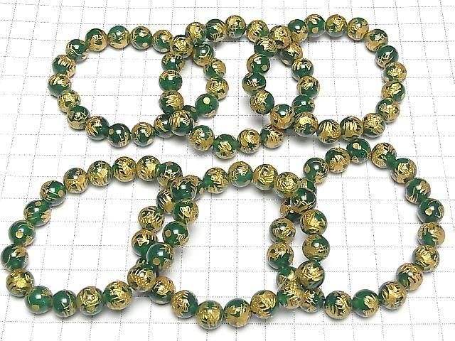 [Video] Golden! Dragon Carved! Green Onyx Round 10mm Bracelet