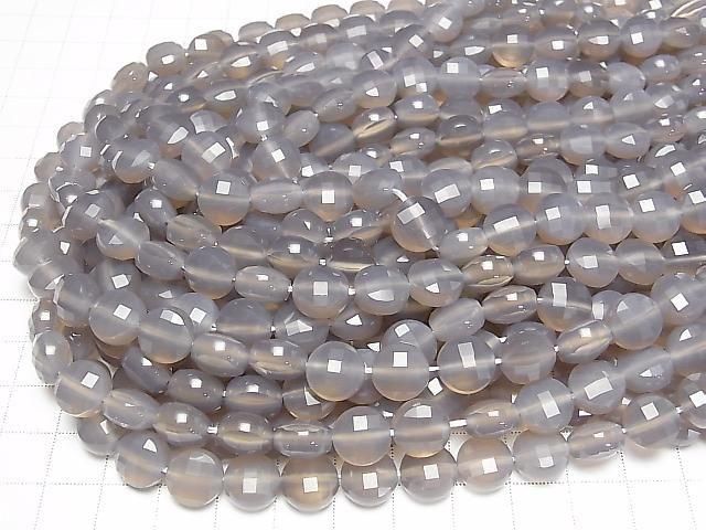 [Video] High Quality! Gray Onyx Faceted Coin 10x10mm Half or 1strand beads (approx. 14 inches/34 cm)