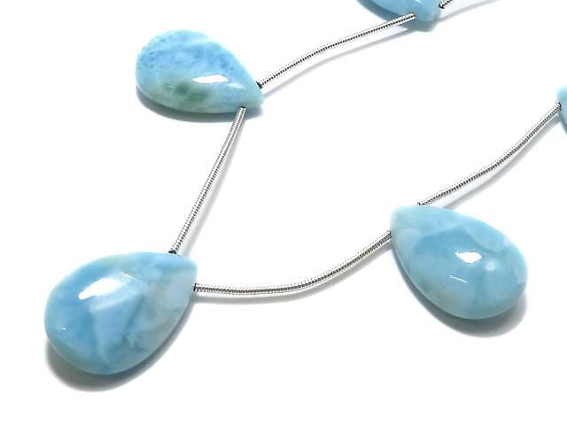 [Video][One of a kind] Larimar Pectolite AA++ Pear shape (Smooth) 1strand (5pcs) NO.15