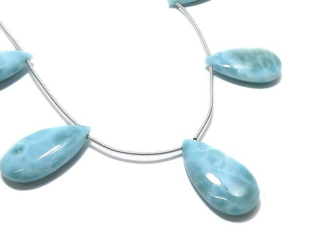 [Video][One of a kind] Larimar Pectolite AA++ Pear shape (Smooth) 1strand (5pcs) NO.21