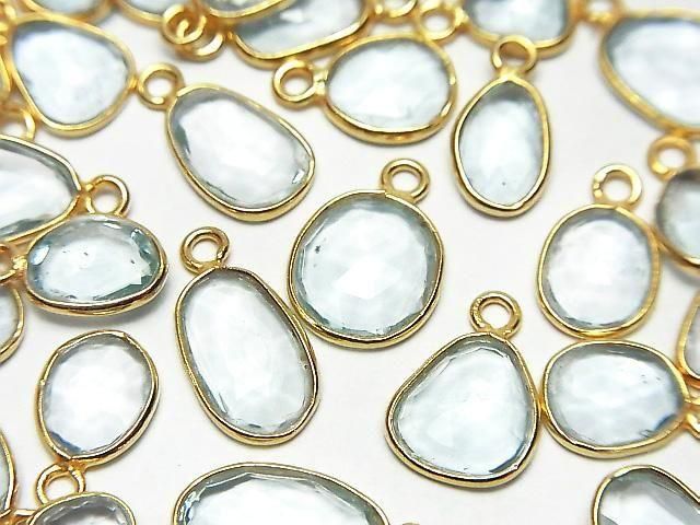 [Video] High Quality Sky Blue Topaz AAA Bezel Setting Freeform Rose Cut [One Side] 18KGP 3pcs