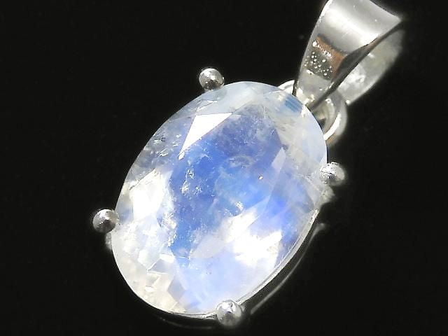 [Video][One of a kind] High Quality Rainbow Moonstone AAA Faceted Pendant Silver925 NO.72