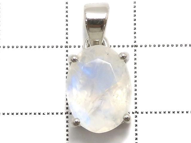 [Video][One of a kind] High Quality Rainbow Moonstone AAA Faceted Pendant Silver925 NO.74
