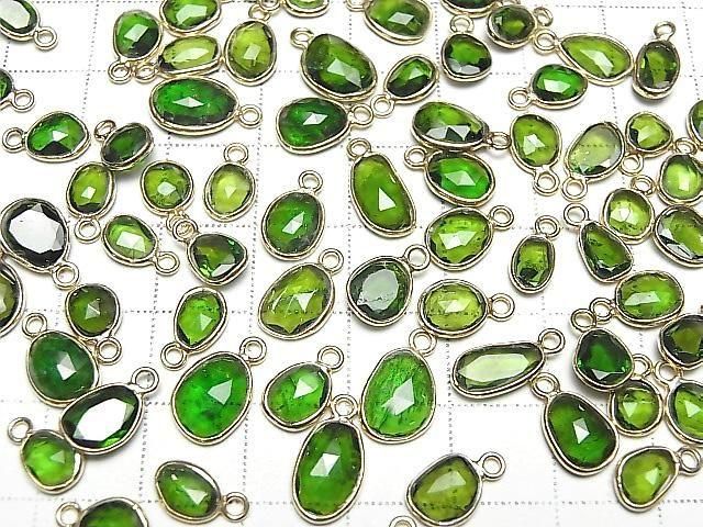 [Video] Chrome Diopside AA++ Bezel Setting Freeform Rose Cut [One Side] 18KGP 3pcs